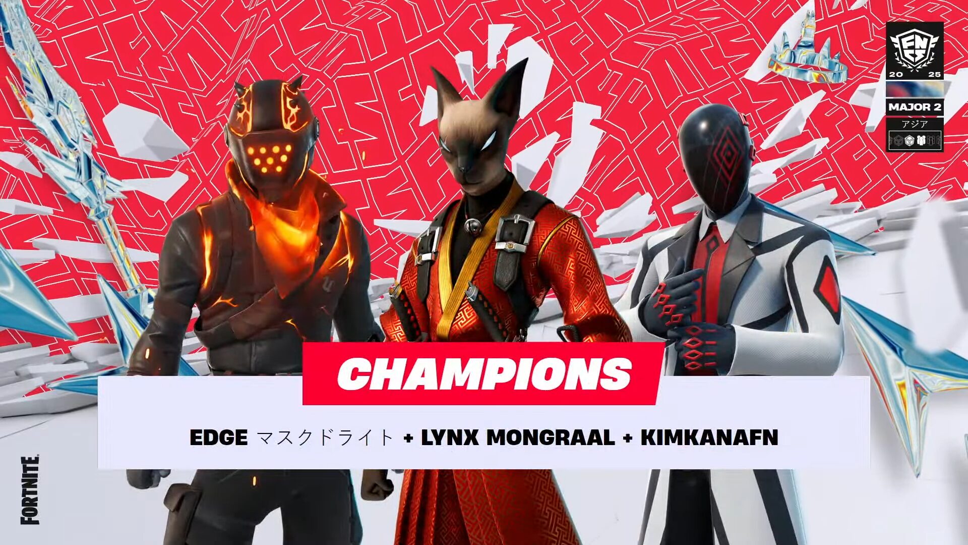 『FNCS 2025 ASIA メジャー2』らいと、らぜる、ていていトリオが優勝!グローバルチャンピオンシップの出場権獲得