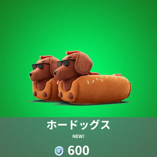 本日のアイテムショップにフォートナイトオリジナルシューズ「ホードッグス」が登場しています。名前のとおり、ホットドッグを連想させるおいしそうな、いやかわいいシューズです。パンの上に犬が、なんとシュールで個性的。目立つこと間違いなし。