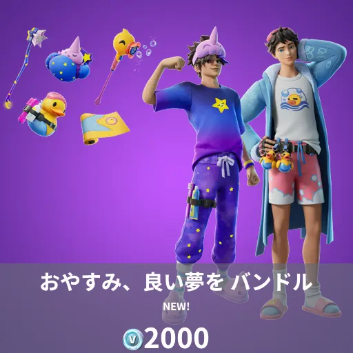 本日のアイテムショップに、フォートナイトオリジナルスキンお休み系の新スキンが登場しました。お休み系と言えば以前、お風呂女子として紹介したバサニーが記憶に新しいです。今シーズンはありそうでなかった展開があるので今後のアイテムにも要注目です。