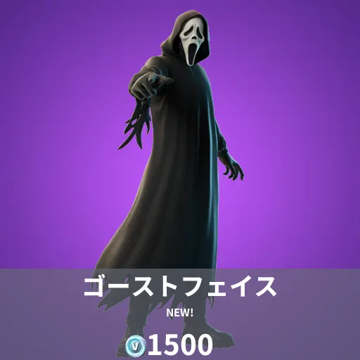 本日のアイテムショップに、ハロウィンでは定番の映画スクリームシリーズから「ゴーストフェイス」が登場しています。すでにバトルロイヤル内では黒色の不気味な電話BOXに入ると彼に変身できますが、今回は変身せずともマッチ中ずっと彼になりきれます。