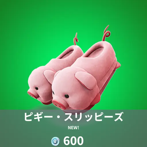 本日のアイテムショップに新シューズ「ピギー・スリッピーズ」が登場しました。今回のフォートナイトオリジナルシューズはブタです。くりっとしたかわいい目とシッポが非常にかわいいです。