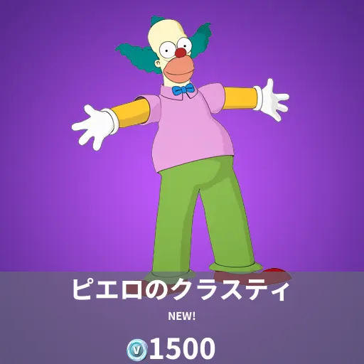 本日のアイテムショップに、シンプソンズからピエロのクラスティが登場しました。ピエロのクラスティは、マップ内ボスとして登場し、ヒットすると風船1個が付与されるエキゾチックの武器を持っています。