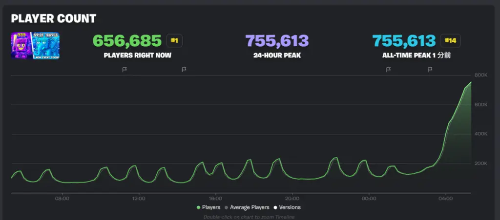 UGCでありながら、これほどの同接人数を記録するのは異例で、フォートナイトのコミュニティパワーの大きさを改めて示す結果となりました。