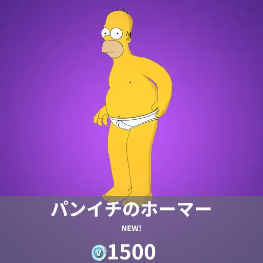 本日のアイテムショップで、トレーラーにも登場していたパンイチの巨人こと、パンイチのホーマーが配信されました。