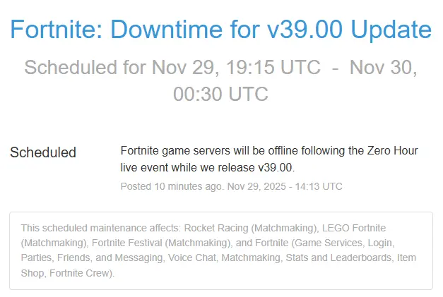 Epic Gamesは今回、イベント後にすぐv39.00を展開することを明言しており、これによってチャプター7への移行作業が進められます。