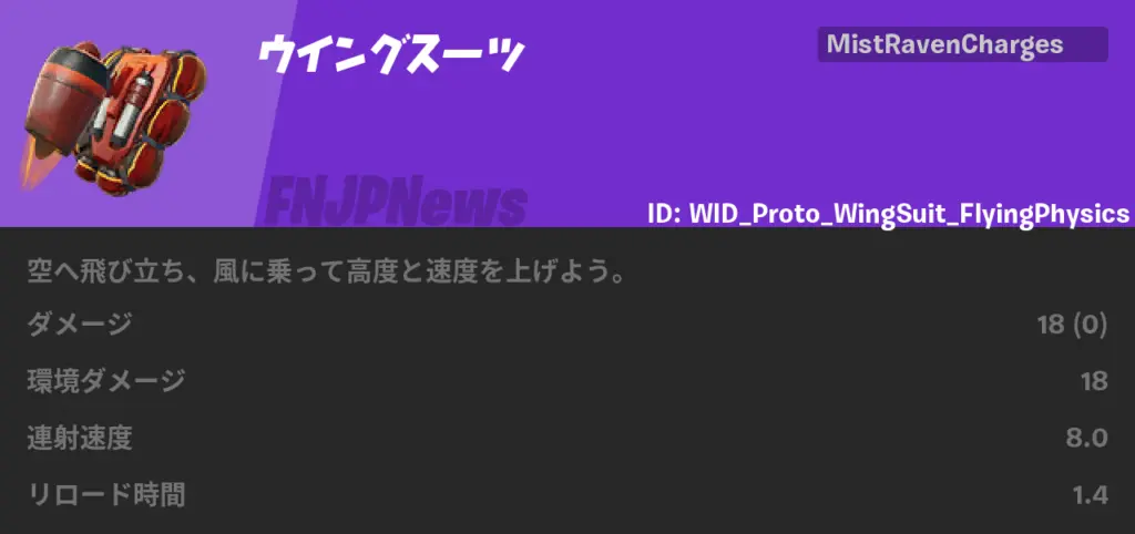 新アイテム「ウィングスーツ」#フォートナイト pic.twitter.com/VJ0FQDTJAx