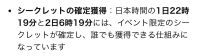 - シークレットの確定獲得:日本時間の1日22時19分と2日5時19分には、イベント限定のシークレットが確定し、誰でも獲得できる仕組みになっています