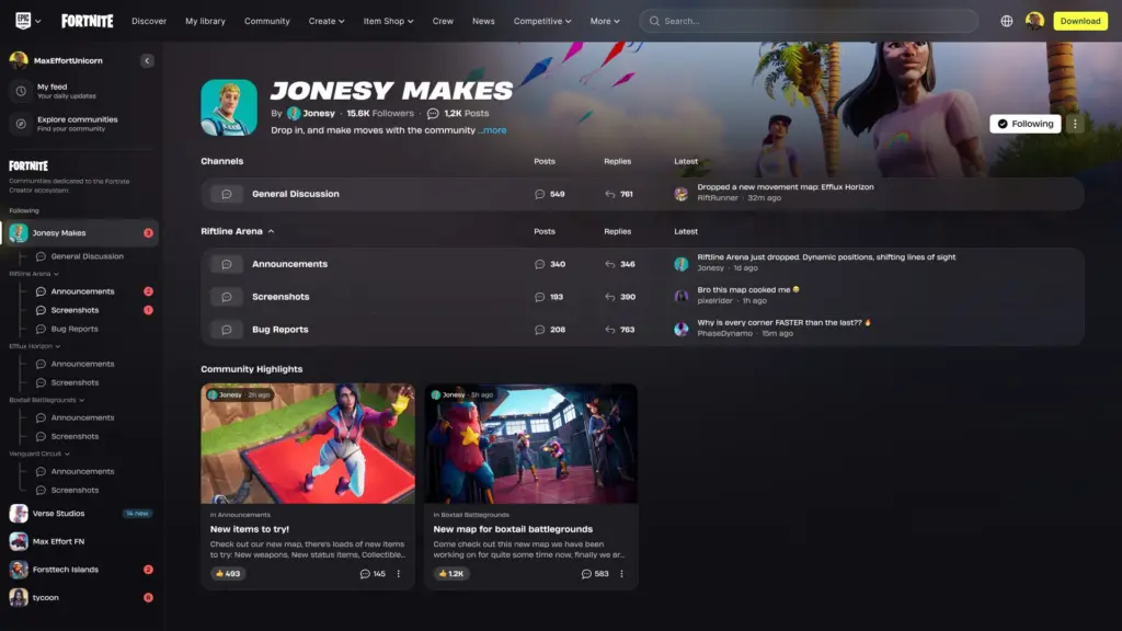 デベロッパーが「フォートナイト コミュニティ」を作成可能に!島の最新情報やイベント告知が直接届けられる新機能が登場