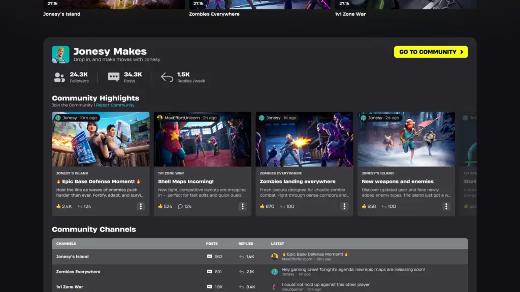 作成した投稿は、ウェブ上のフォートナイト コミュニティに表示され、モデレーションを経た後、ゲーム内にも反映されます。