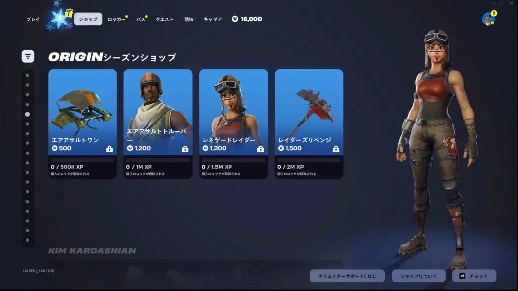 さらに、人気コスチューム「レネゲードレイダー」も再登場しています。本アイテムは昨年と同様、一定量の経験値(XP)を獲得することで購入ロックが解除される仕組みとなっており、条件を満たしたプレイヤーのみがショップで購入可能となります。