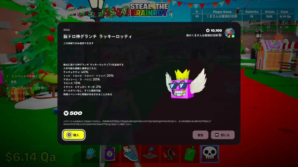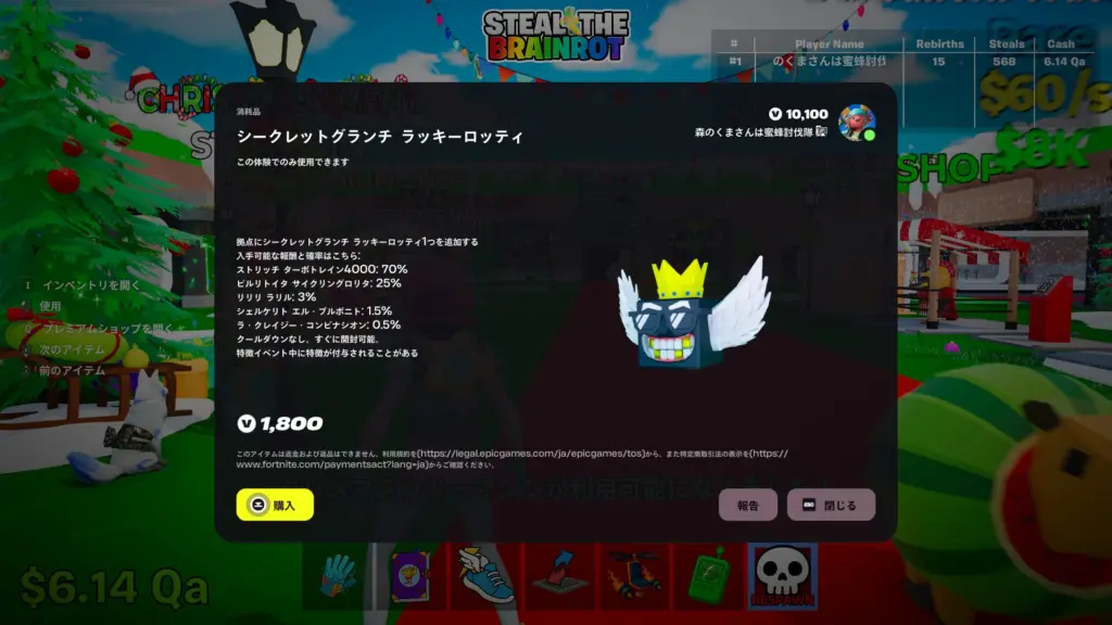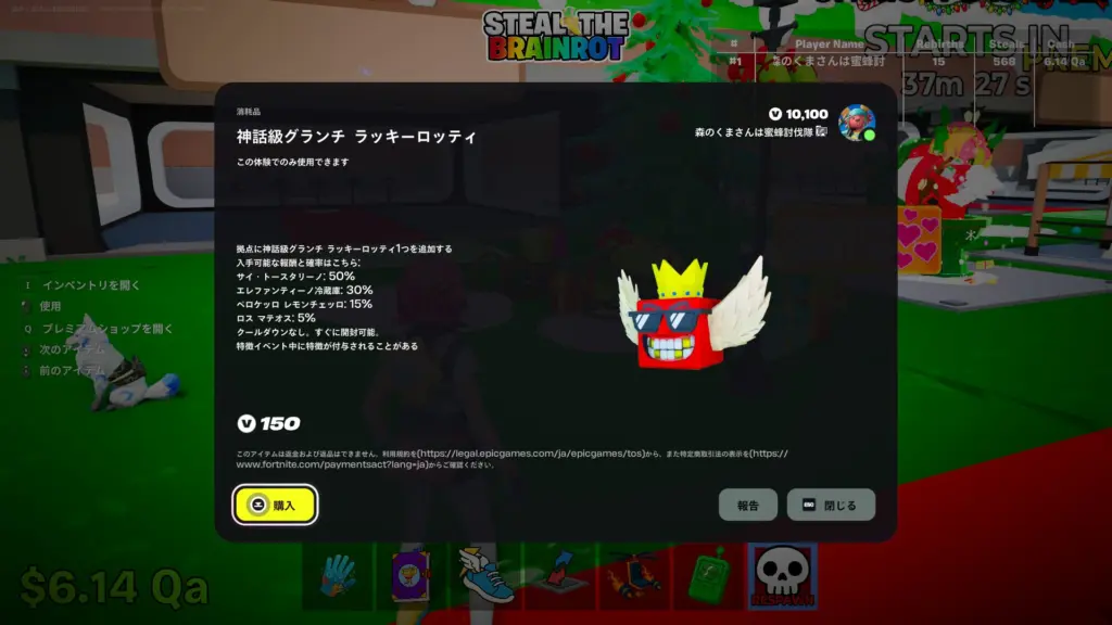 価格:150 V-Bucks - ブレインロット ゴッド グランデラッキーロット