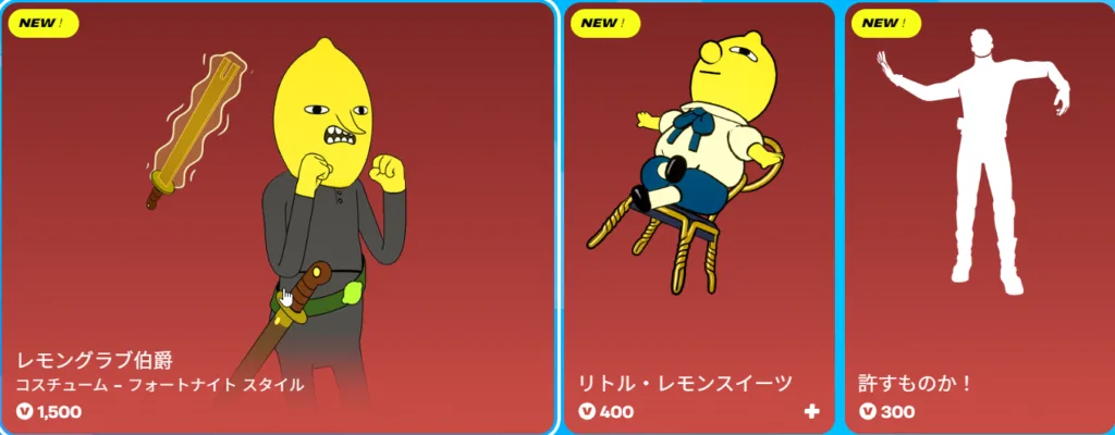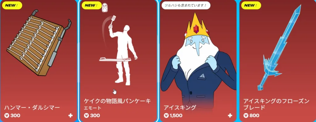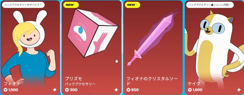 本日のアイテムショップは大型コラボが目白押し。アドベンチャー・タイム第2弾コラボとしてフィオナ、警句、アイスキング、レモングラブ伯爵が登場しています。