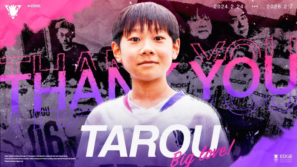 eスポーツチームEDGEは、本日付でたろう選手がチームを脱退することを発表しました。