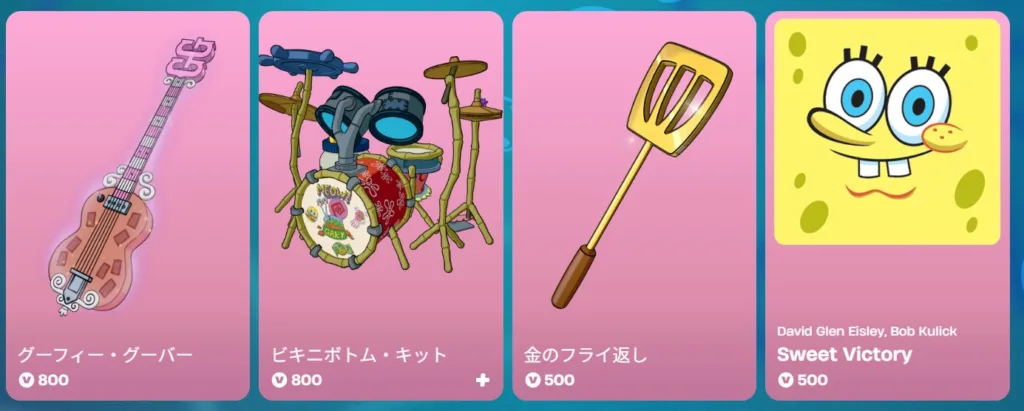 本日のアイテムショップに今でもネットミームのド定番でもあるスポンジボムがフォートナイトのアイテムショップに登場しています。