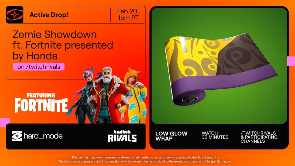 対象期間中にTwitchで対象のフォートナイトの配信を視聴することで、ゲーム内アイテムを無料で入手できる特別なイベントです。