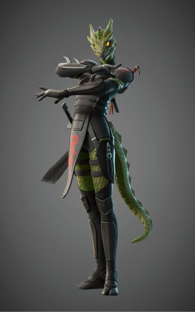 - ルックス(中央): チャプター1 シーズン8のティア100報酬であり、フォートナイト史上初の女性ティア100スキンとして知られる彼女が、よりタクティカルで洗練された装備を纏って再登場。その威厳はORIGINでも健在です。