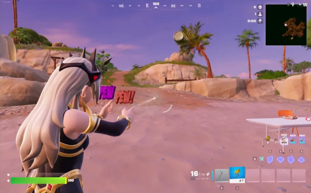 「フィンガーガン」は、その名の通り「指で銃の形を作る」ことで攻撃を行うという、フォートナイト史上最もユニークな武器の一つです。アイテムスロットを1枠使用しますが、手に持っている間はキャラクターが文字通り「指鉄砲」の構えをとり、トリガーを引くことで弾丸(あるいは衝撃波)を放ちます。