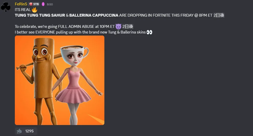 一方の「バレリーナカプチーナ」も、優雅なバレリーナと日常的なカプチーノを掛け合わせた、フォートナイト特有のユーモアが光るビジュアルになると見られています。可愛らしさの中に漂う独特の「カオス感」は、これまでのネタ系スキンの系譜を継ぐ新たな人気キャラクターとなる可能性を秘めています。